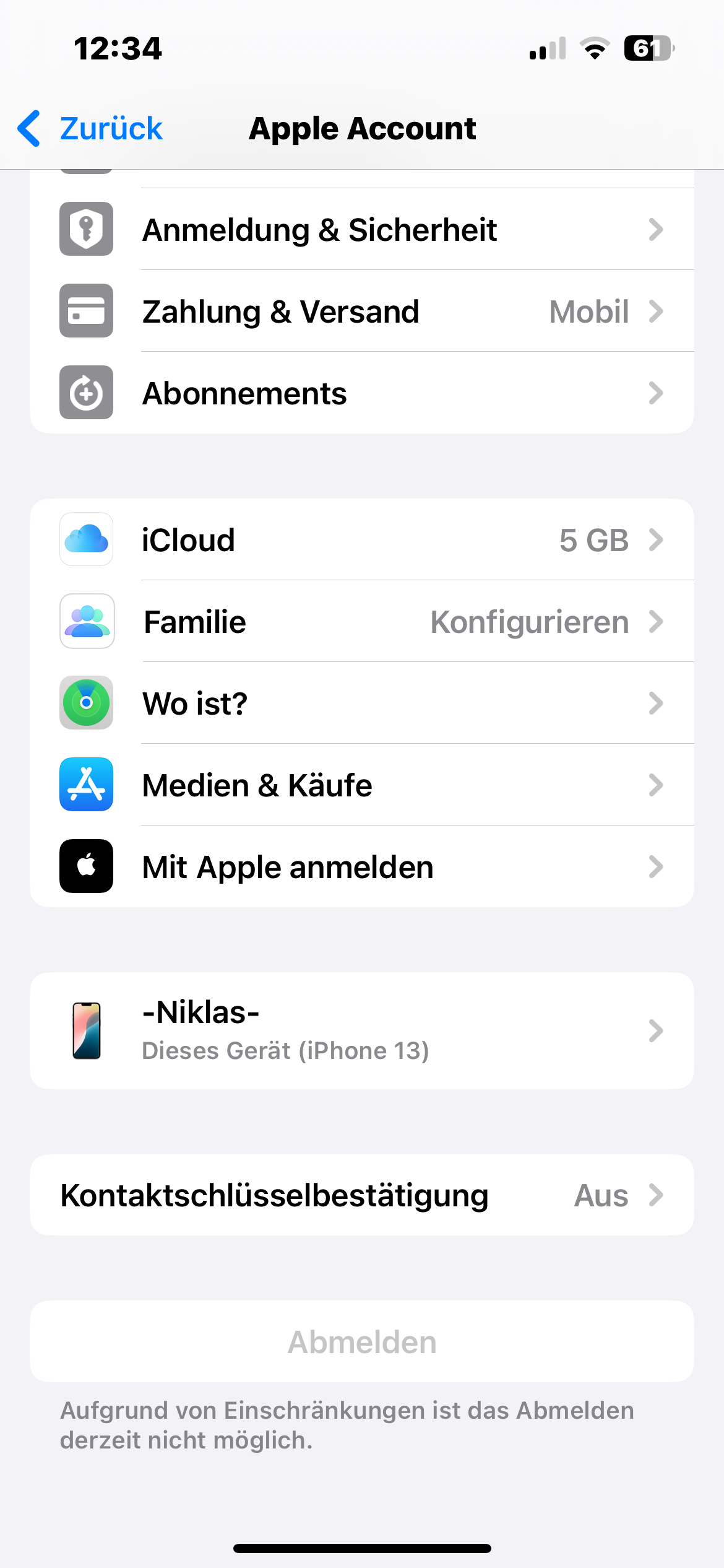 Ich wollt mich abmelden und mit meiner neuen Apple ID wieder anmelden. Konnt ich aber nicht, weil dort steht auf Grund von Beschränkungen kannst du dich nicht abmelden. Warum? Ich habe keine Beschränkungen oder so an