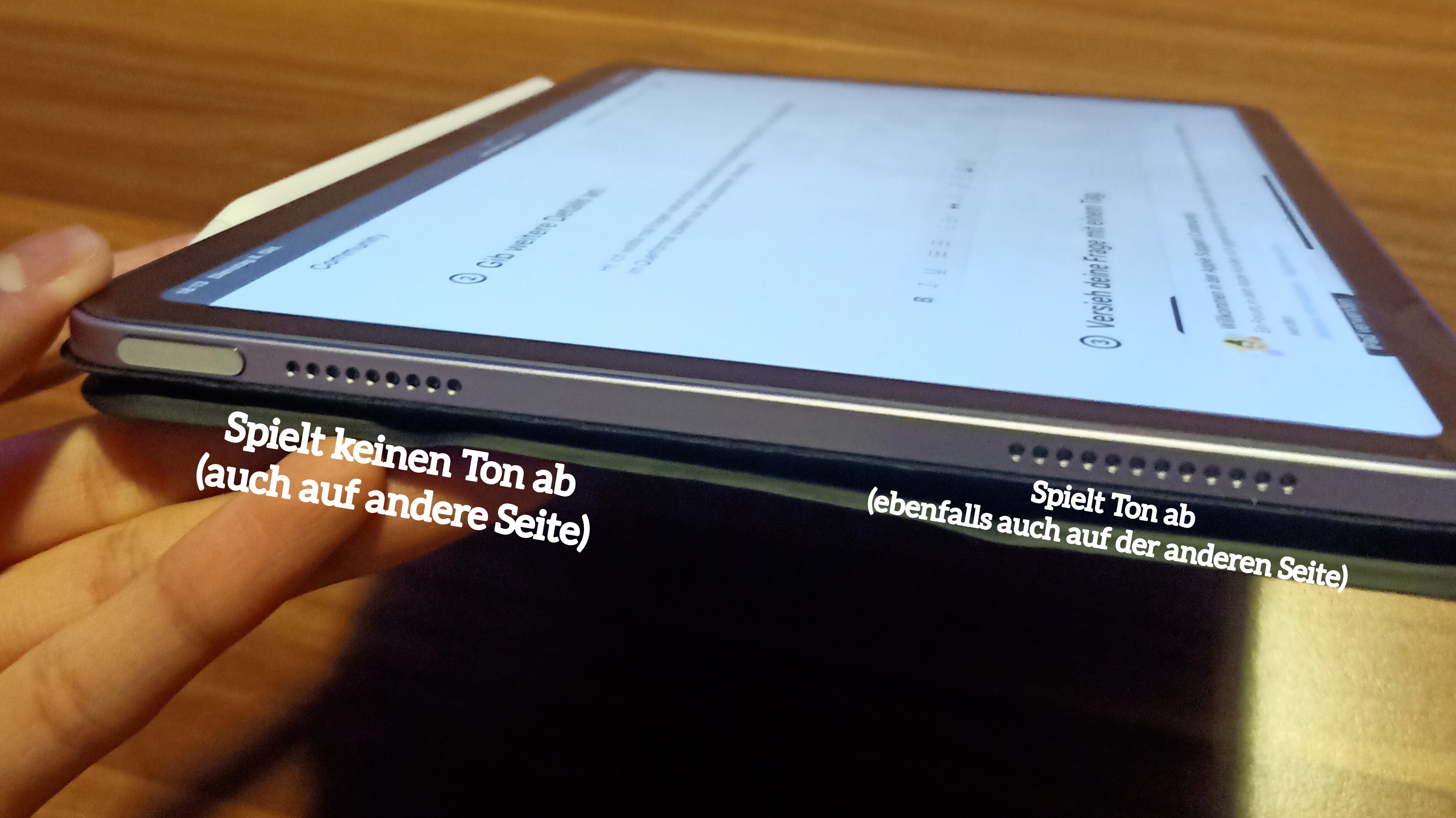 Im Querformat spielen nur die Lautsprecher unten ab.
