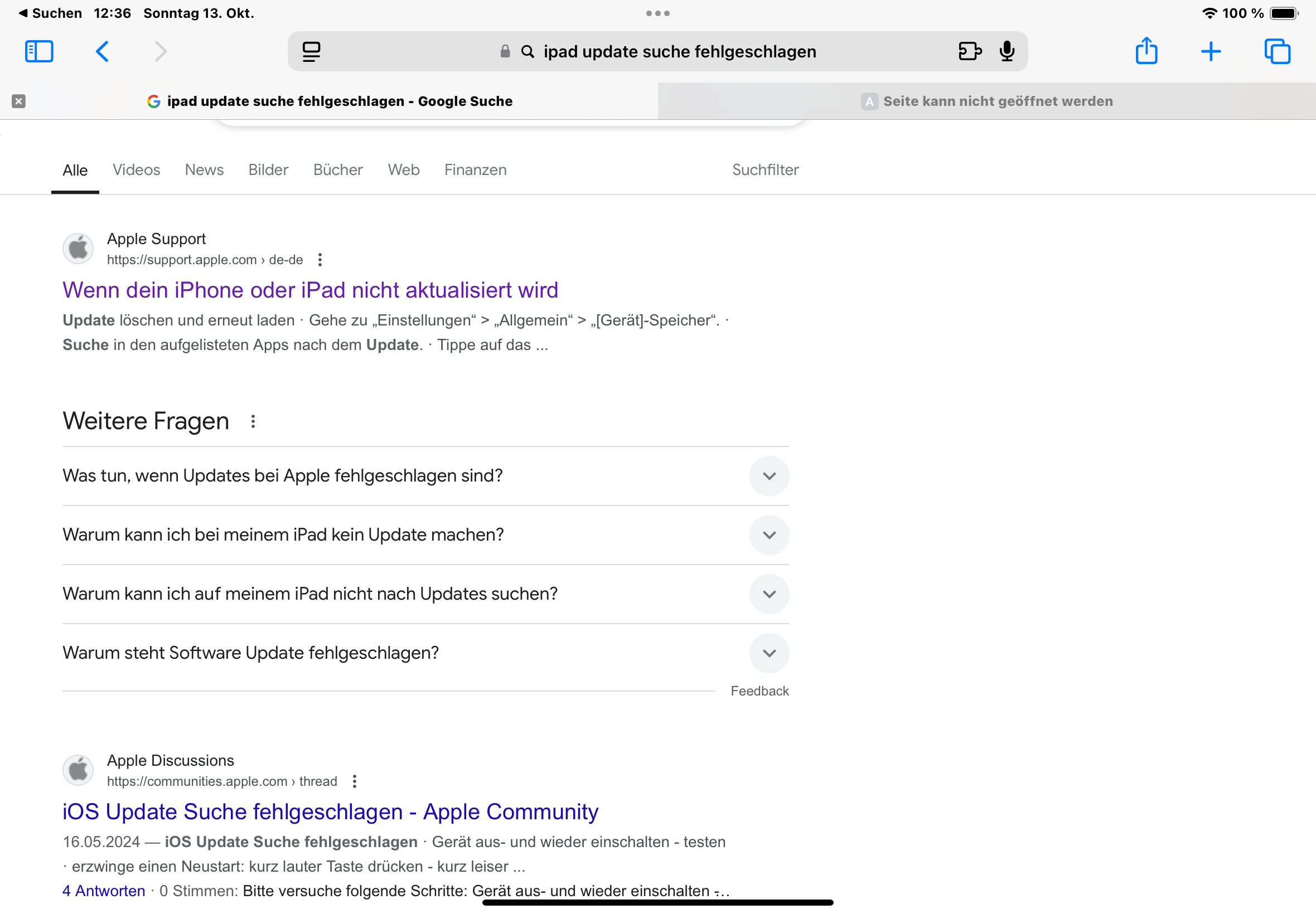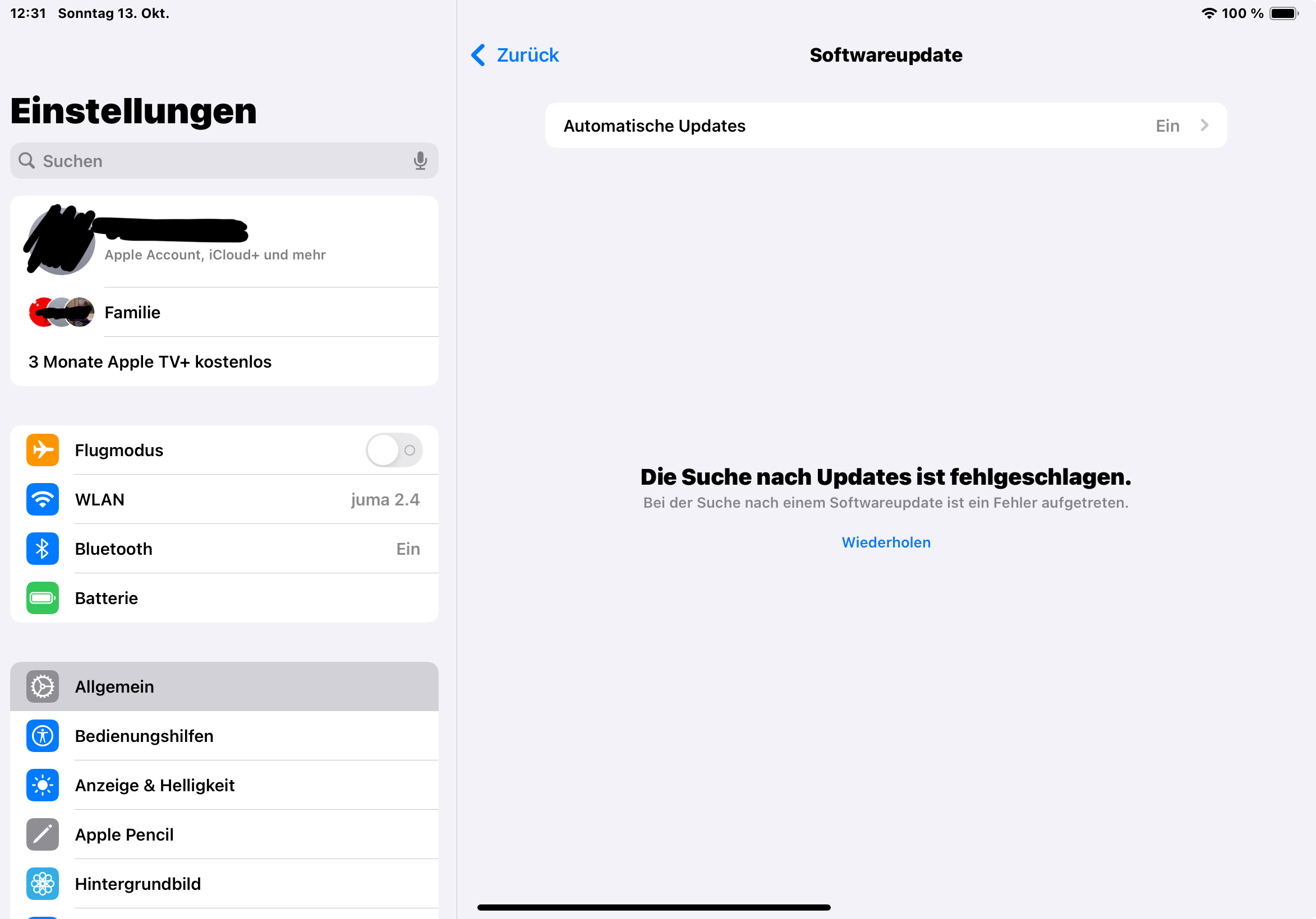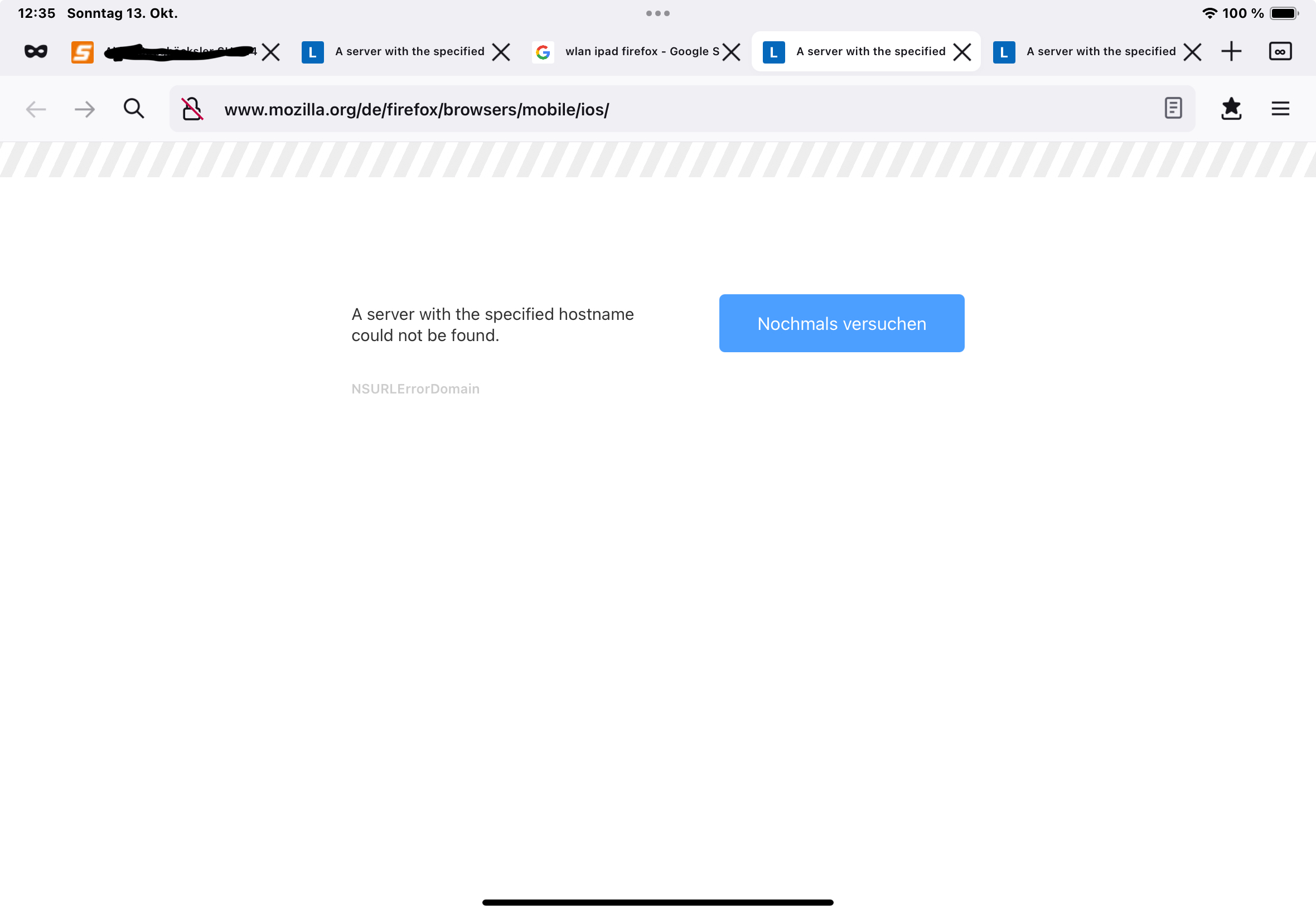 Seiteher (zumindest ist es mir vorher nicht aufgefallen) zeigt mein iPad zwar oben das WLAN-Symbol an, es ist aber augenscheinlich nicht verbunden, da keine E-Mails abgerufen werden (Accountfehler), keine Internetseiten geöffnet werden können (weder bei Safari noch beim Firefox).