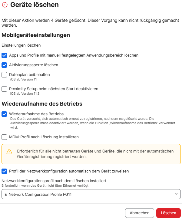 • beim Löschen über das MDM wie im Bild unten das 'Profil der Netzwerkkonfiguration' in der Dropdownliste auswählen (mit dem Mausrad wird das sichtbar)