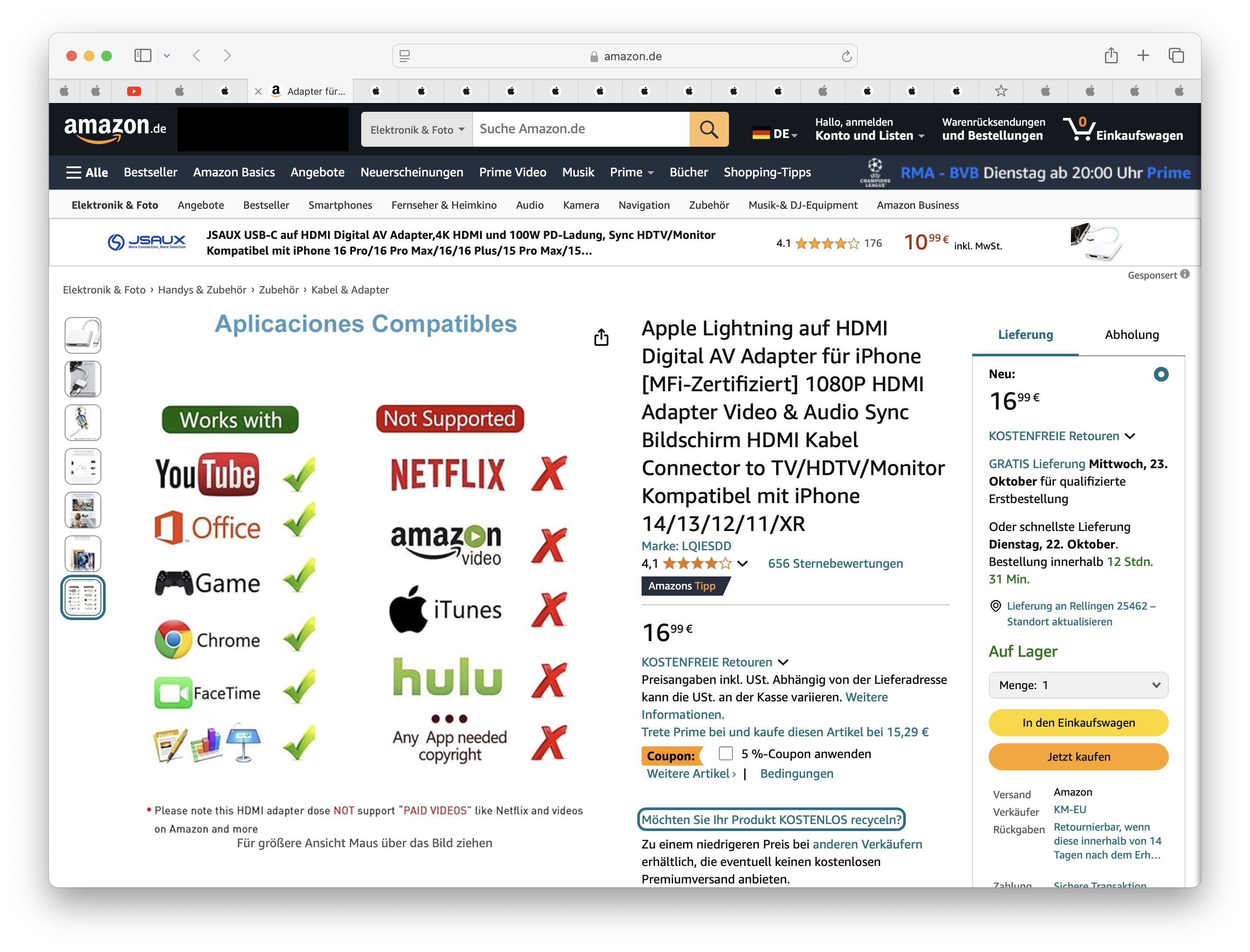 Warum empfehle ich diesen Adapter. Nun, weil ich hier mit Sicherheit weiß, dass dieser funktioniert. Und die kriegt man auch deutlich billiger bei Händlern wie Mediamarkt und co. Und zusätzlich gibt es natürlich auch weiteres Mfi Zubehör, beispielsweise von Belkin, das auch HDCP unterstützt. Da ich hier aber kein spezielles Produkt selber testest habe will ich hier keine voreiligen Empfehlungen treffen.