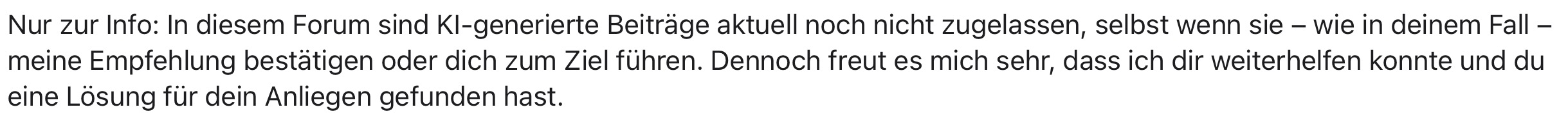 Dieser Thread wurde vom System oder dem Community-Team geschlossen. Du kannst alle Beiträge positiv bewerten, die du hilfreich findest, oder in der Community nach weiteren Antworten suchen.