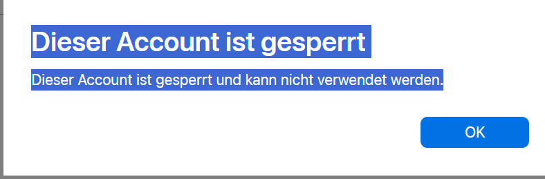• "Du kannst dich nicht anmelden, da dein Account aus Sicherheitsgründen deaktiviert wurde."