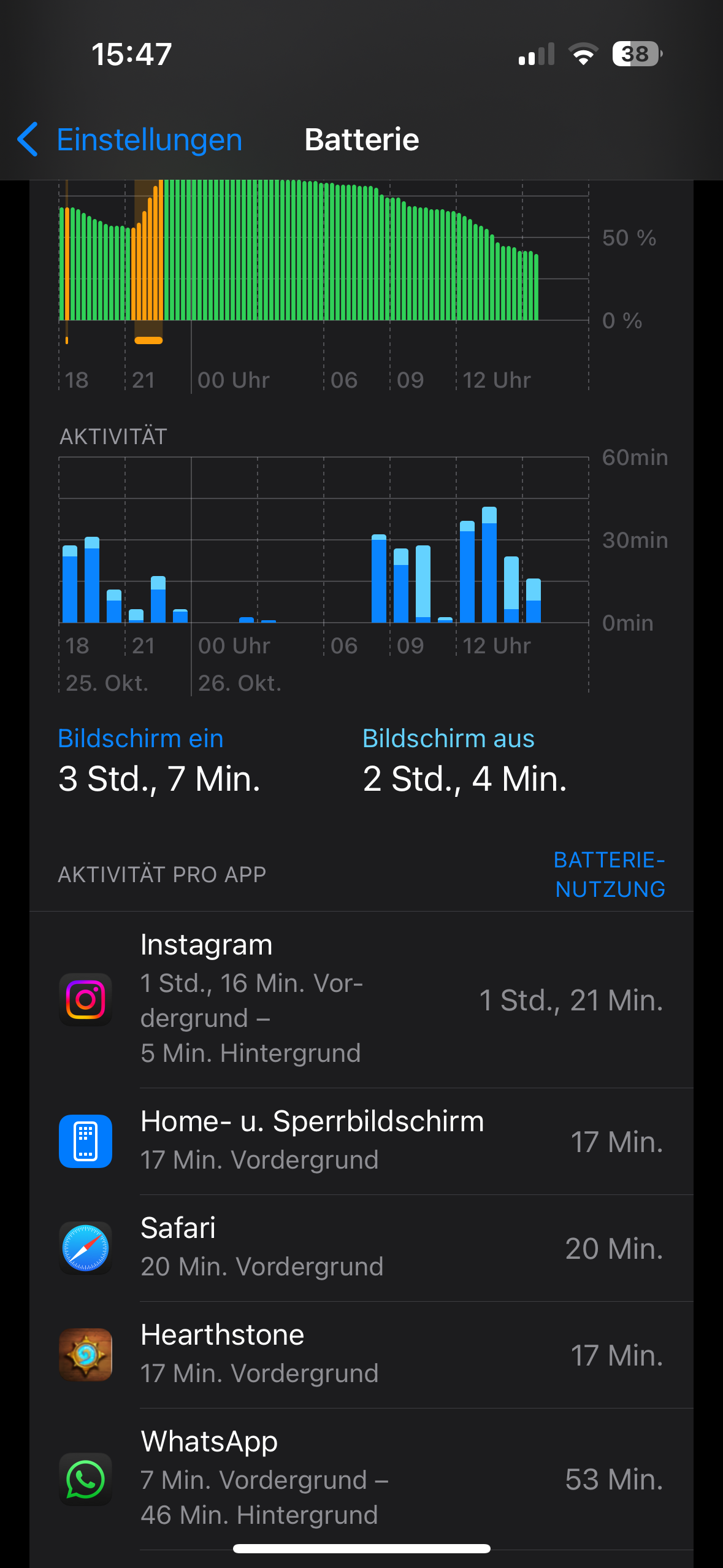 Euch erst einmal schon vielen Dank für die Antworten . Anbei einmal die Screens der letzten 24 STD . Was mir da einleuchtet , ich habe viel auf Instagram rumgedaddelt , was man ja auch an der Zeit sieht.