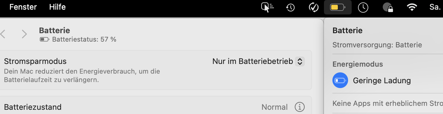 Gelbe Anzeige des Stromsparmodus auf macOS 15.1 Sequoia