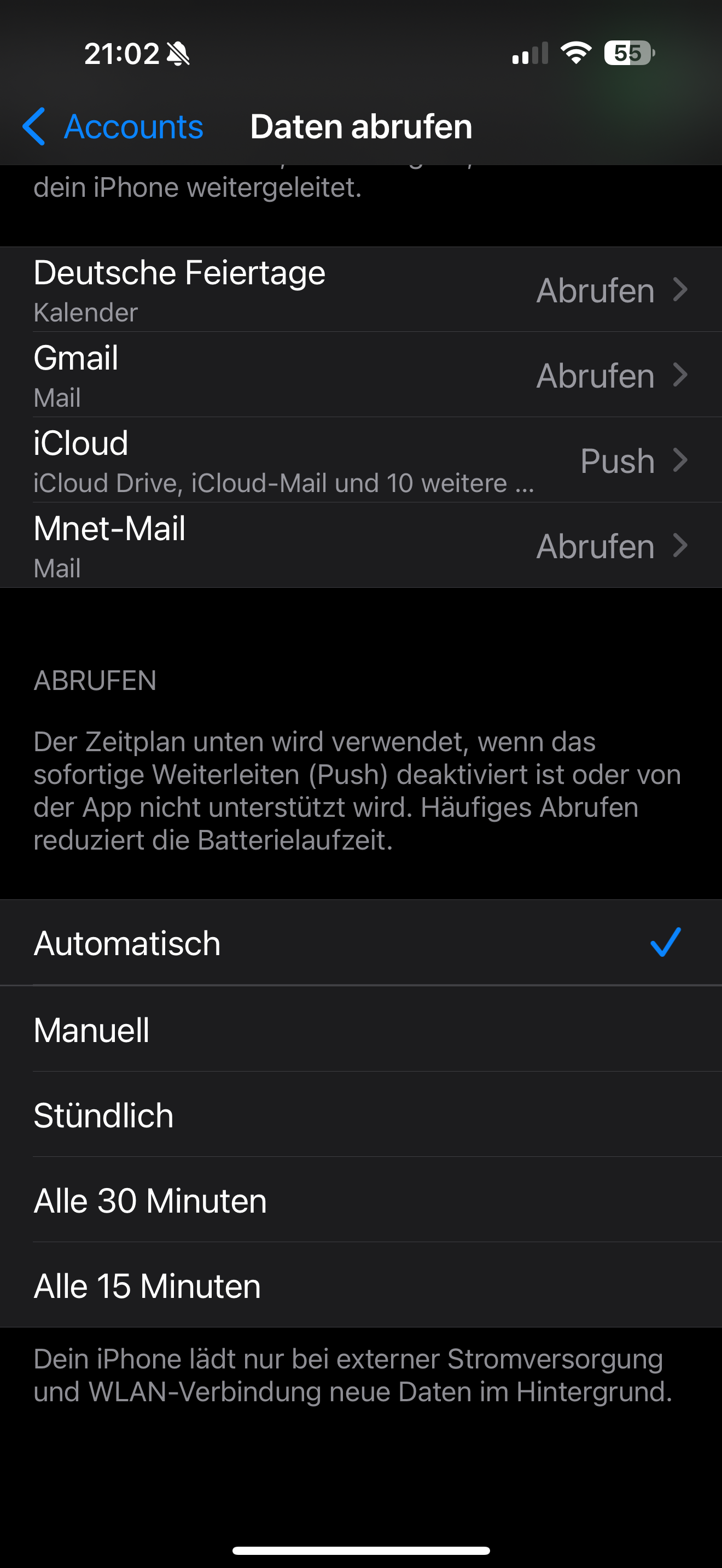 Auch kommen meine emails aufs iPhone nicht automatisch wie eingestellt sonder immer erst wenn ich email öffne .