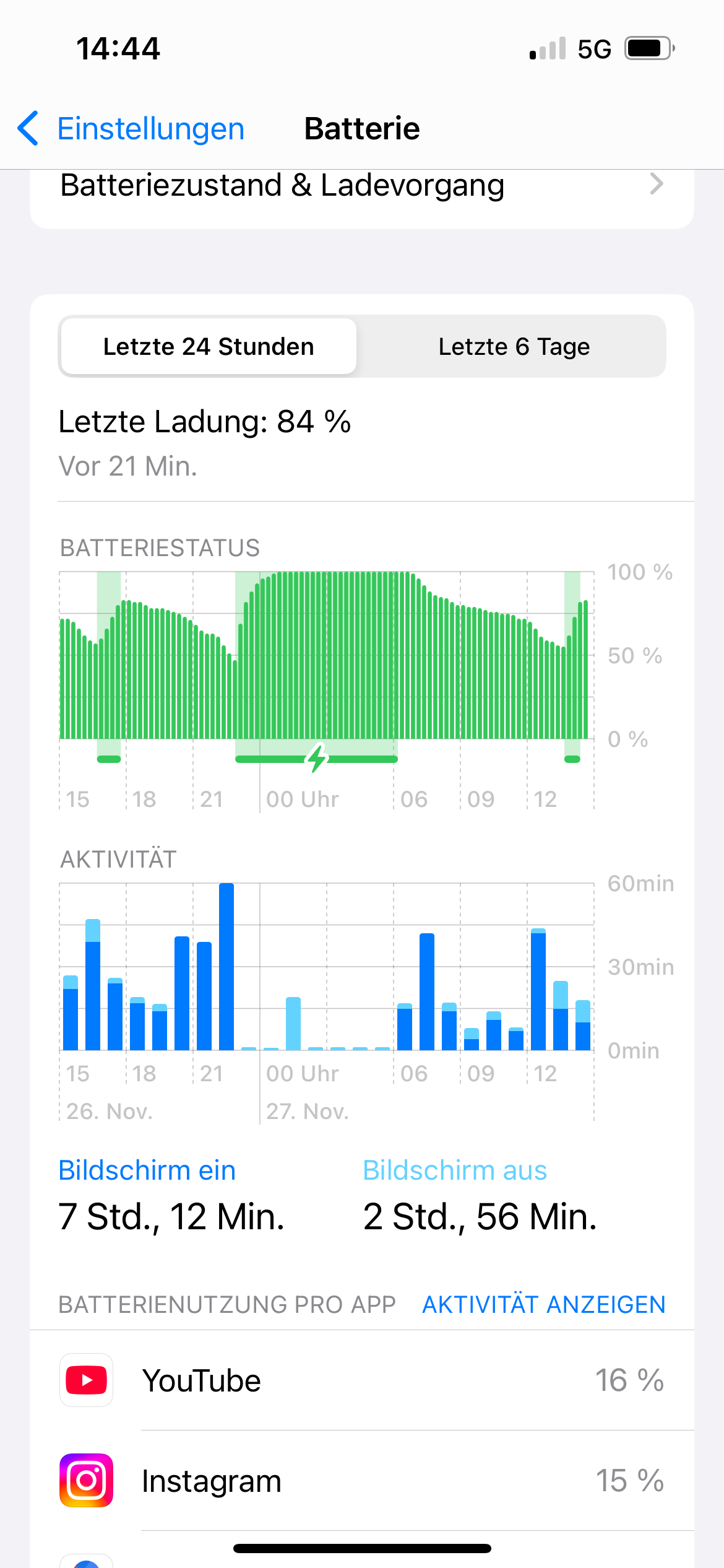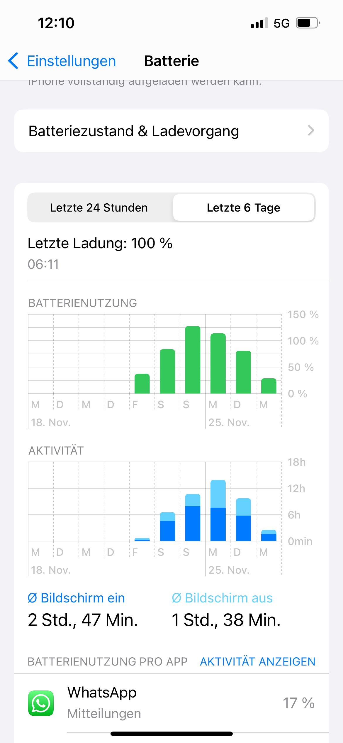 Absolut unrealistisch. Da es sich mal wieder um "Refurbished" handelt, kann ich mir schon denken warum da 100% stehen. Ich vergaß aber zu fragen, ob unter Allgemein-Info da der Punkt Serviceverlauf vorhanden ist und wenn ja, ob da was von Akku steht. Rechne ich aber nicht damit und in dem Fall hast du dann ein nicht originalen Bastelakku im Gerät. Dann gilt, was ich hier etwas beschrieben habe: Probleme mit iPhone 12 Akku seit iOS 18 U… - Apple Community