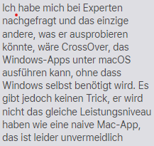 Naja, natürlich gibt es eine Lösung, du kannst Windows in einer Virtuellen Maschine oder via Parallels Desktop auf deinem Mac installieren, ich nutze das zum Beispiel für Microsoft Project 3 an meinem Mac, das gibt es nicht nativ auf dem Mac, sondern nur in Windows.