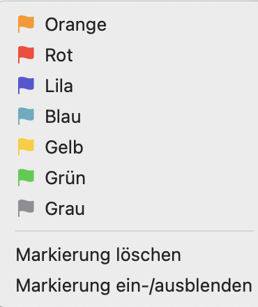 Farben für Markierungsfähnchen bei E-Mails auf MacBook Air