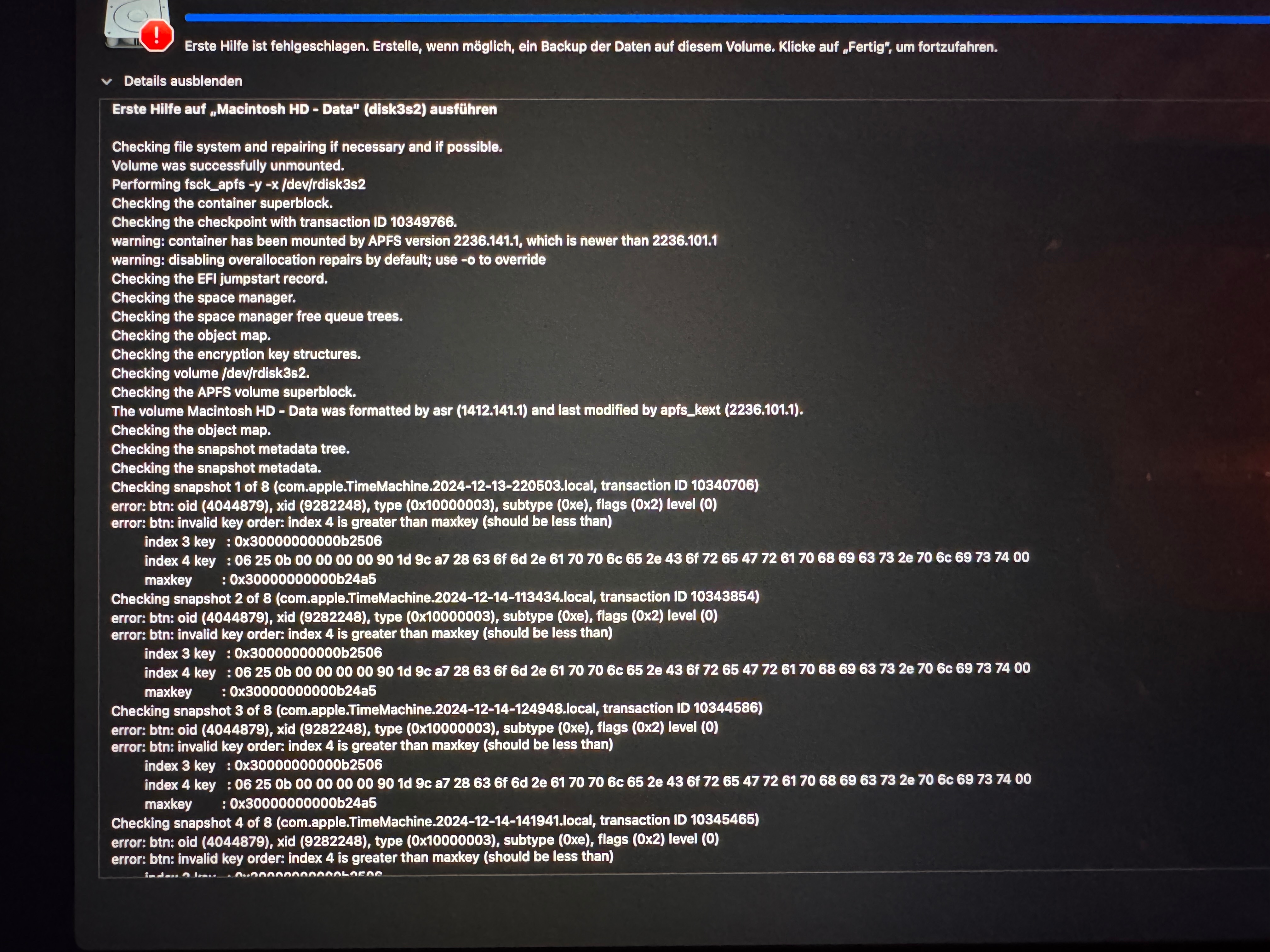 Fehlermeldung bei der Update auf macOS Sonoma