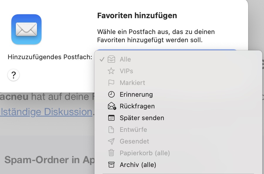 Spam-Ordner in Apple Mail wiederherstellen