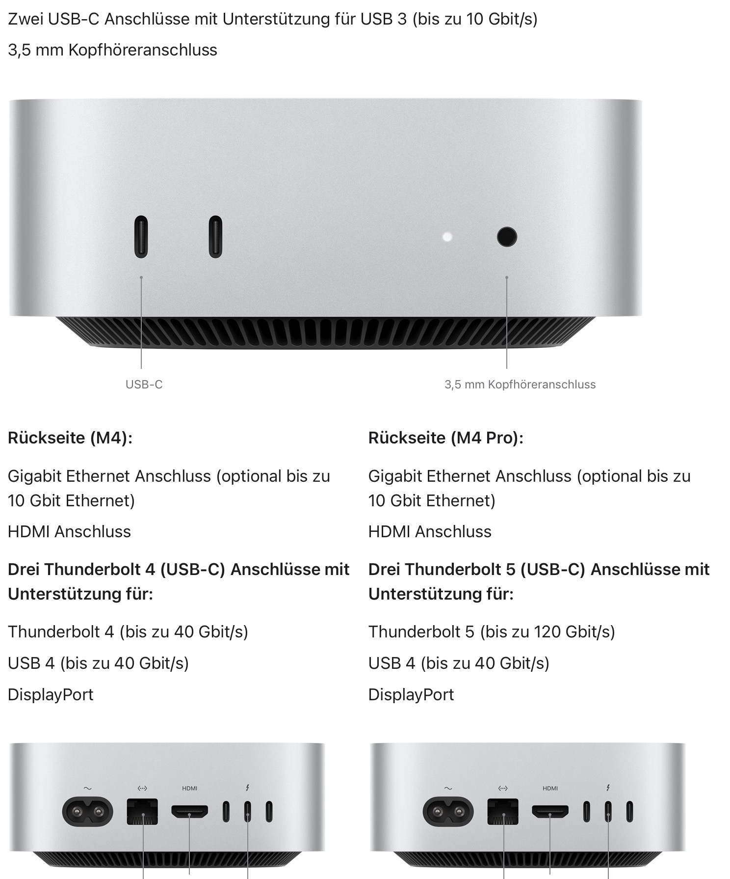 Mac mini M4 SSD Unterstützung an Thunderbolt 4