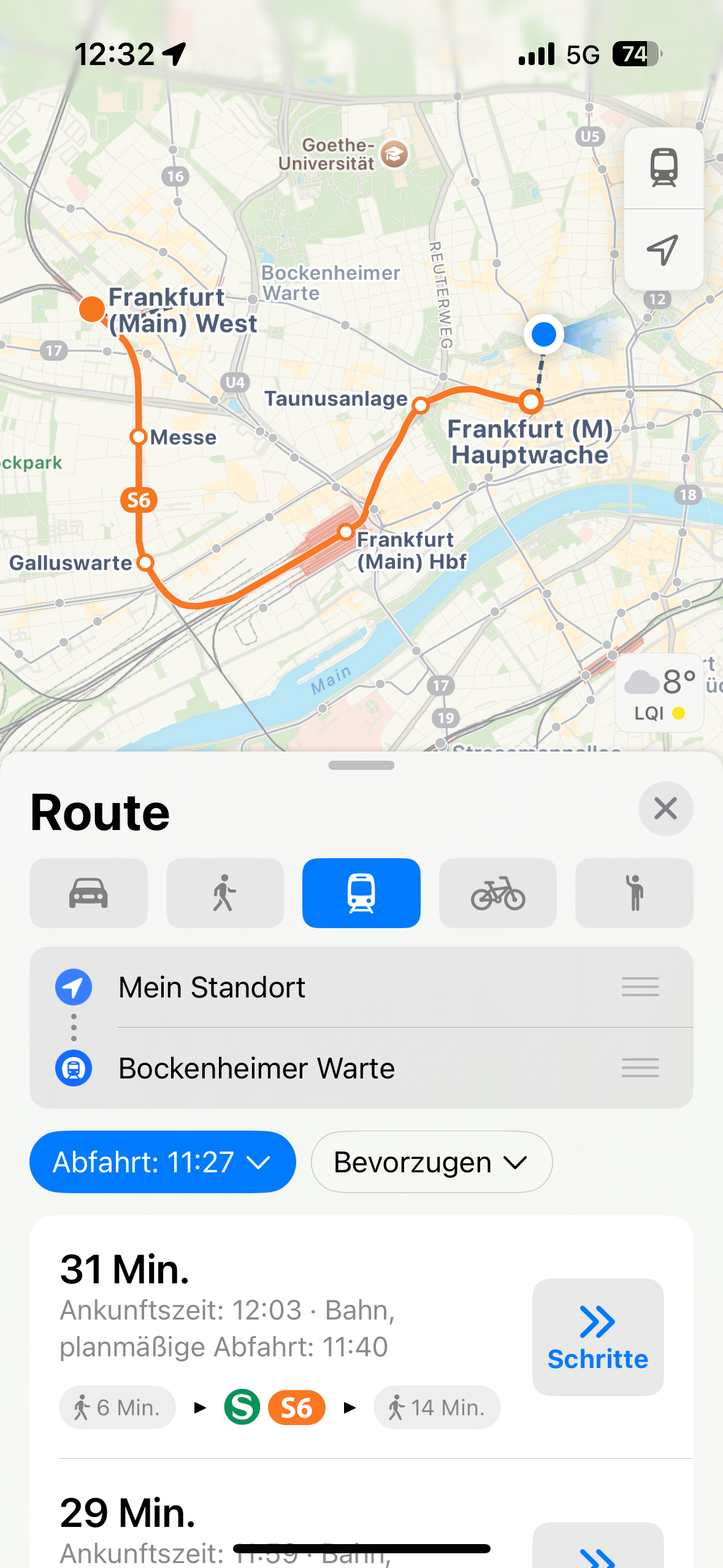Und ich habe ja nicht nach Westbahnhof, sondern nach Bockenheimer Warte (mit U-Bahn) gesucht👍