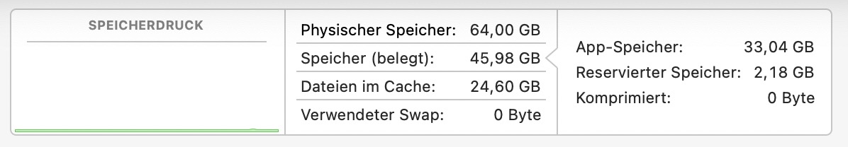 Aktuell komme ich mit den 24GB RAM noch aus, trotz gelegentlichem Swapping (meist zwischen 500MB und 1GB) und kurzen gelben Phasen. Performance-Einbrüche merke ich derzeit keine. Aber ich frage mich: