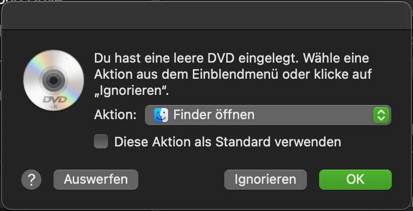 DVD Brennen: Standard-Aktion rückgängig machen?