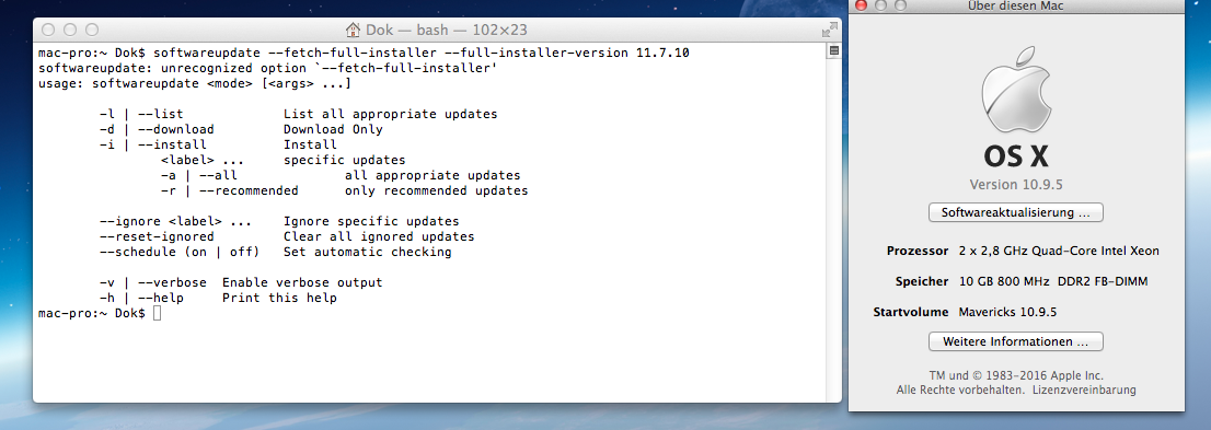 denn Mavericks' Terminal kennt diesen Befehl noch nicht.