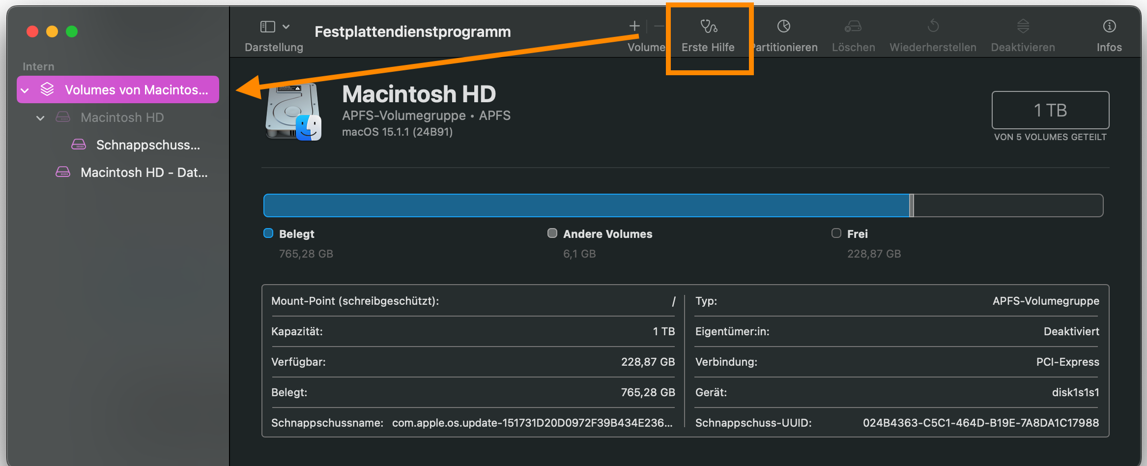 Ich führe diese einmal auf dem Volume durch und nochmal auf den Daten (den Unterschied kenne ich nicht).