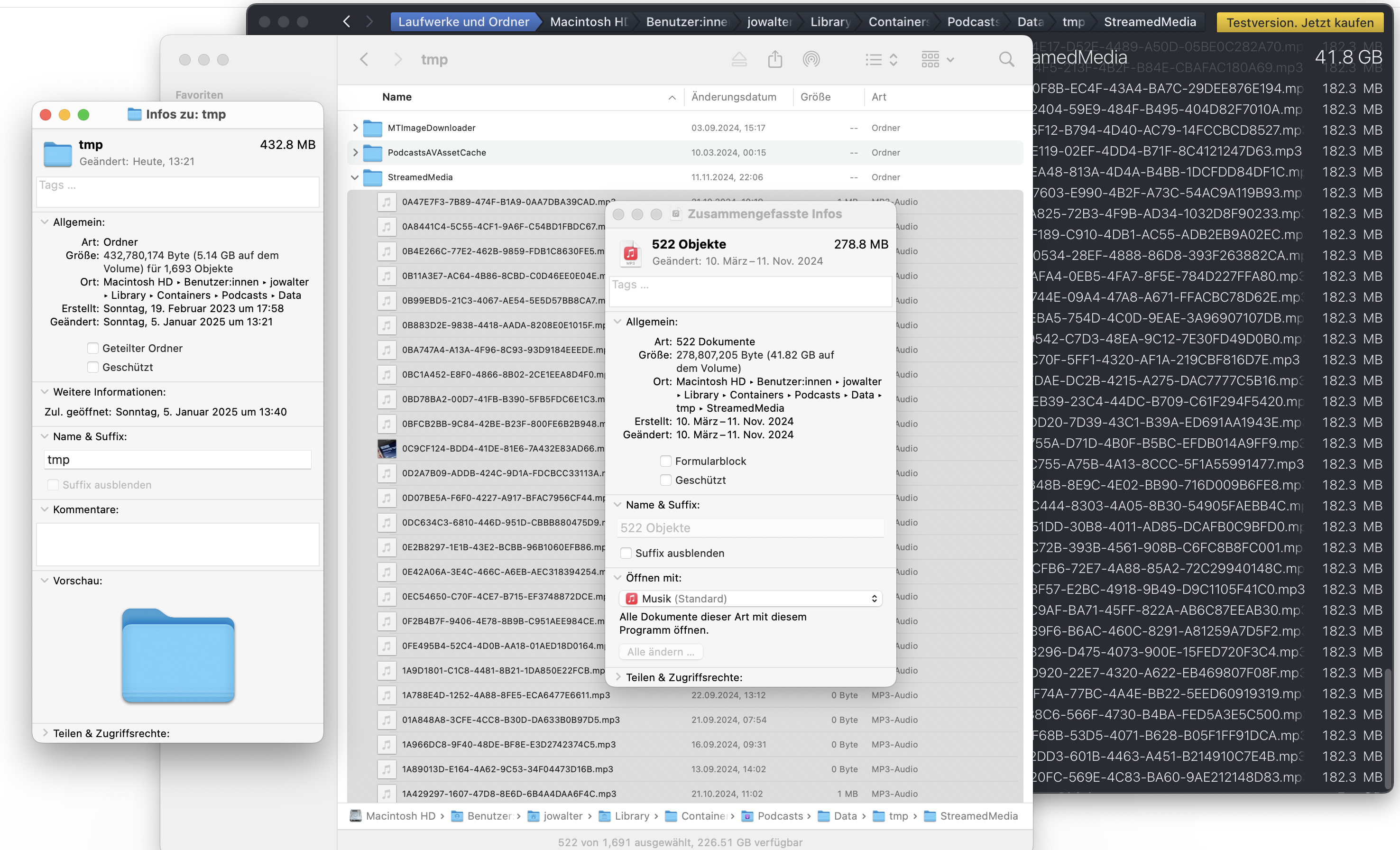 Mehrere Gigabytes an Daten in 'Podcasts'-Ordner in 'Library/Containers'