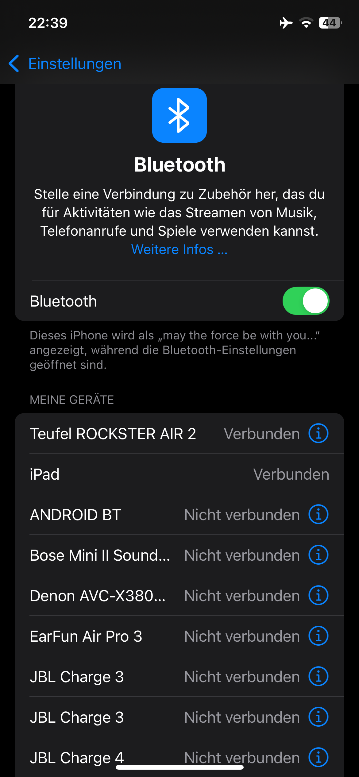 iPhone koppelt sich per Bluetooth mit anderen iPhones und iPads beim Versuch es mit einer Teufel Box verbinden