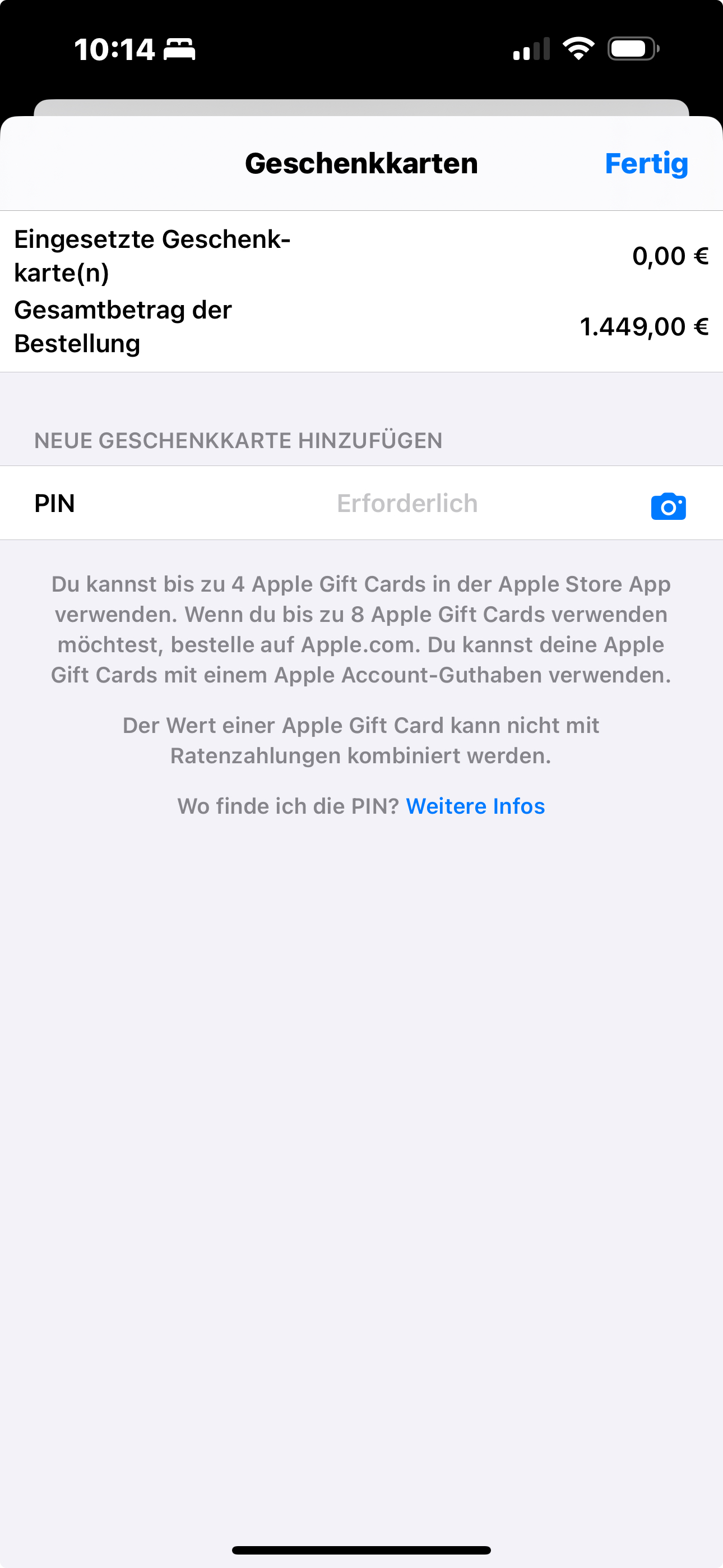 Apple erlaubt keine Abholung mehr im Store mit Guthaben. Einen Hinweis darauf dass nur noch Lieferungen möglich sind gibt es nicht. Und wie schlecht ist bitte die Lieferzeit angegeben. Vor Bestellung wird morgen angegeben und nach Bestellung sind es 5-7 Tage.