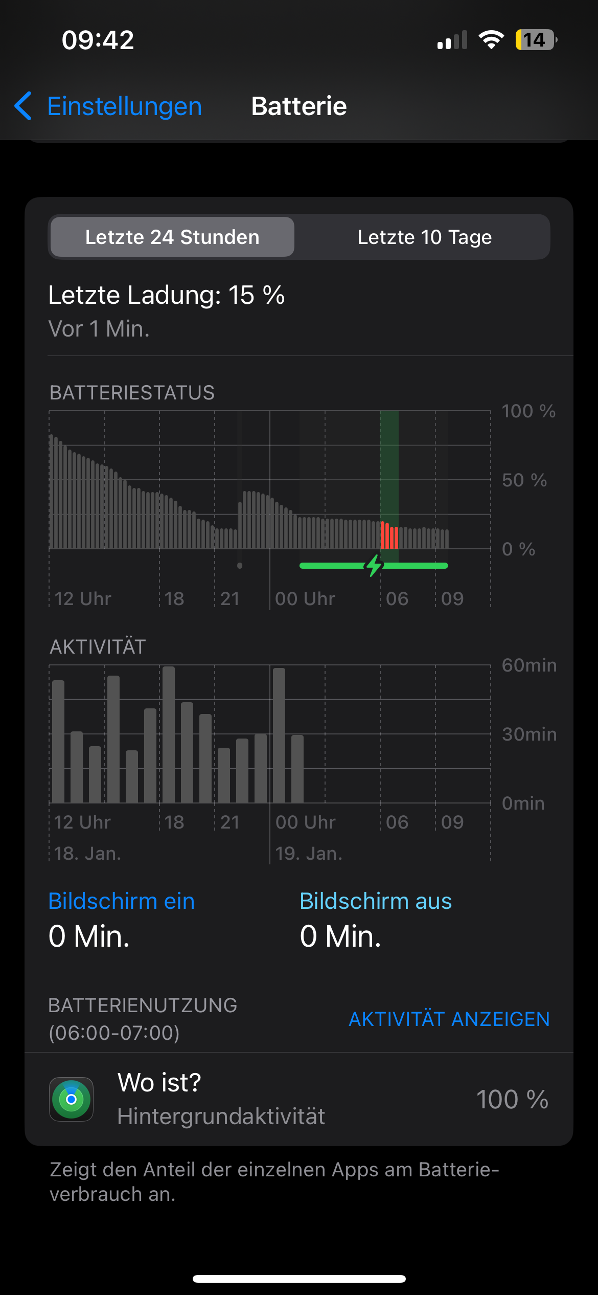 Es ist jetzt schon mehrmals vorgekommen, dass ich mein IPhone 13 über Nacht angesteckt habe und es Morgens weniger Akku hat als Abends. In den Akku-Einstellungen wird angezeigt, dass das Handy geladen hat und keine App Akku verbraucht außer „wo ist?“. Hat jemand ähnliche Erfahrungen gemacht und kann mir helfen ?