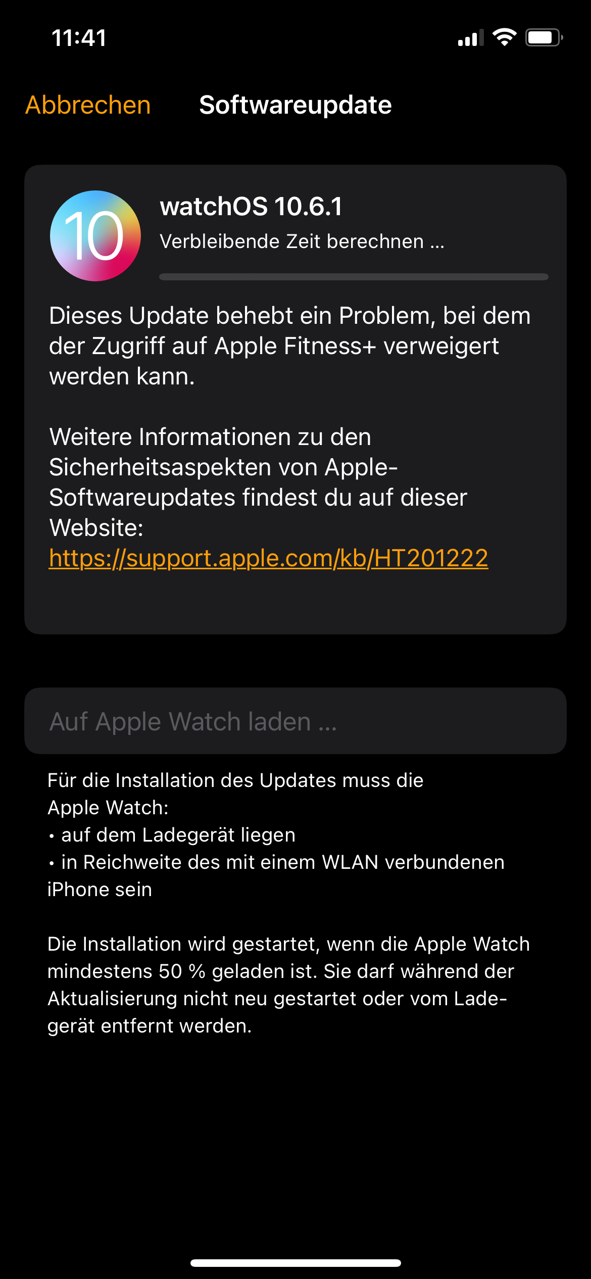 Update auf WatchOS 10.6.1 funktioniert nicht