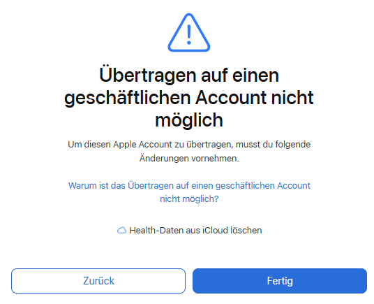 Jedoch geht das nicht. Ich weiß nicht mehr weiter. Die bisherigen Anrufe bei Apple Support waren nicht erfolgreich ..