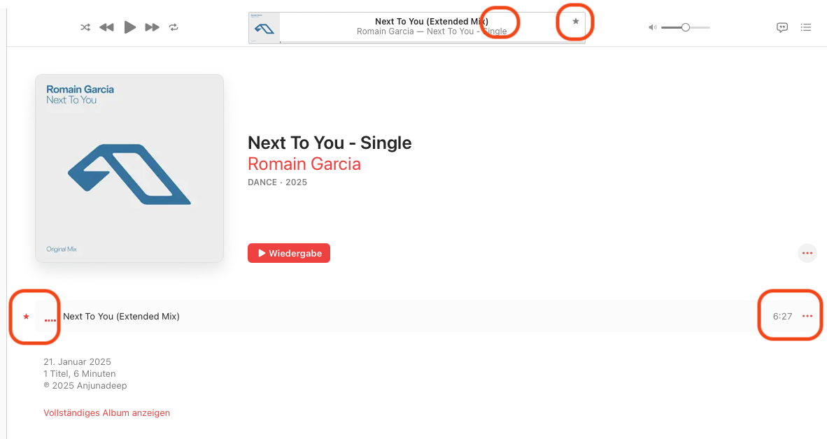 Favorisieren geht recht leicht, genau so wie hinzufügen zu Playlisten, ich habe hier mal alle Möglichkeiten umkreist wo man das machen kann, in der Web Version