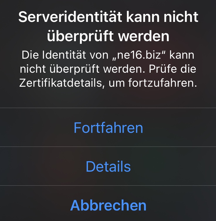 Safari meldet "Serveridentität kann nicht überprüft werden"