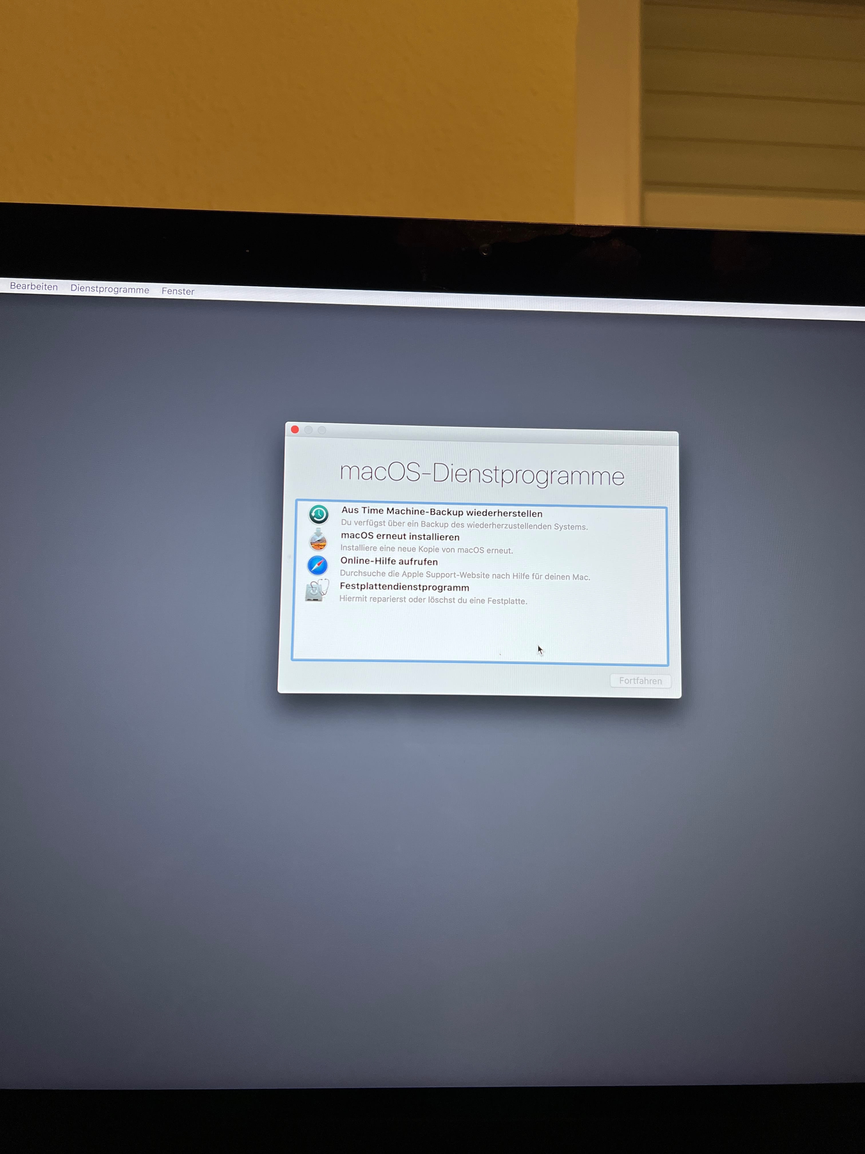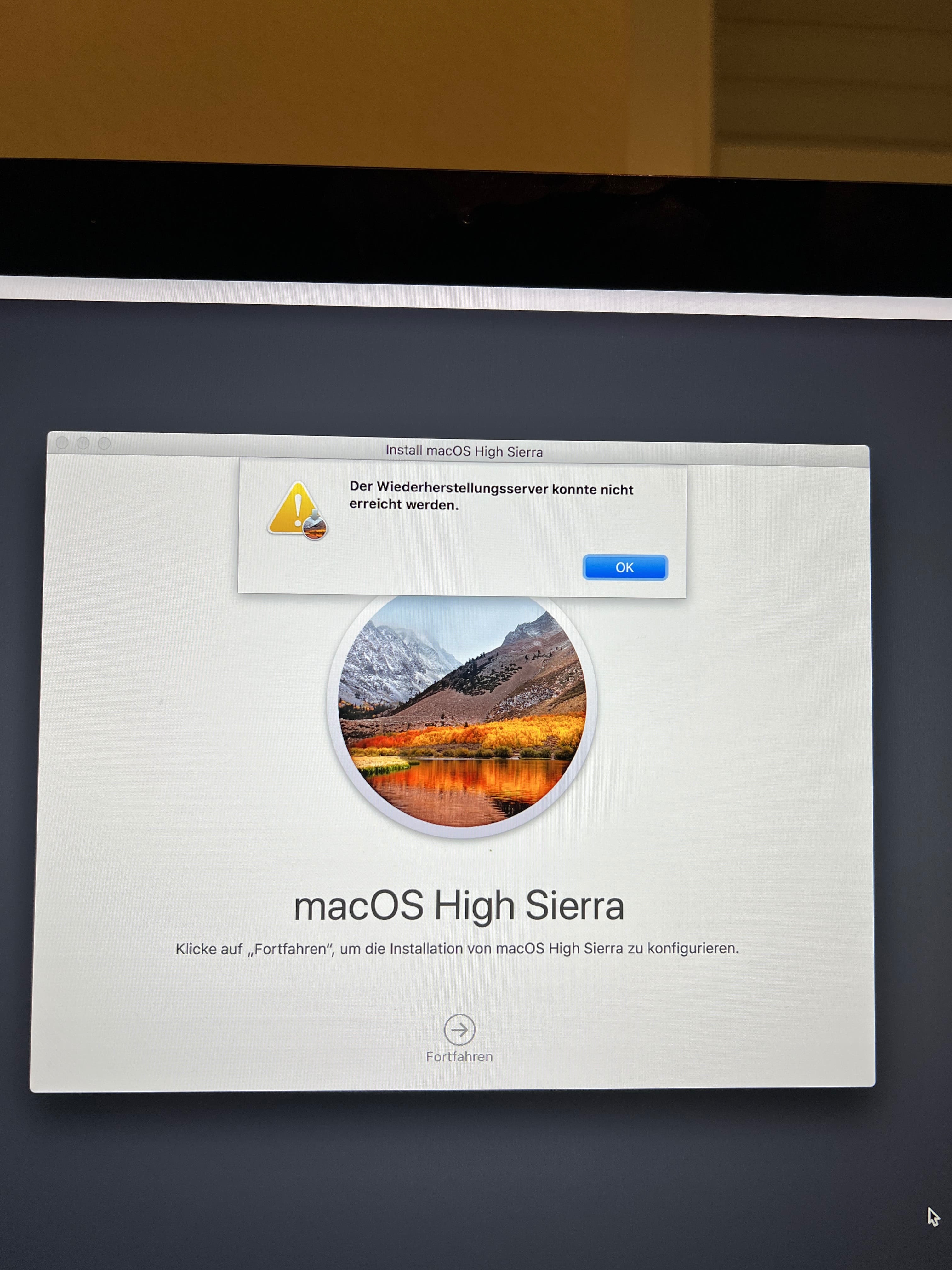 Das Wiederherstellen des Betriebssystem über das Internet geht nicht da der Server nicht erreichbar ist. Laut den Foren liegt es an der Einstellung https: