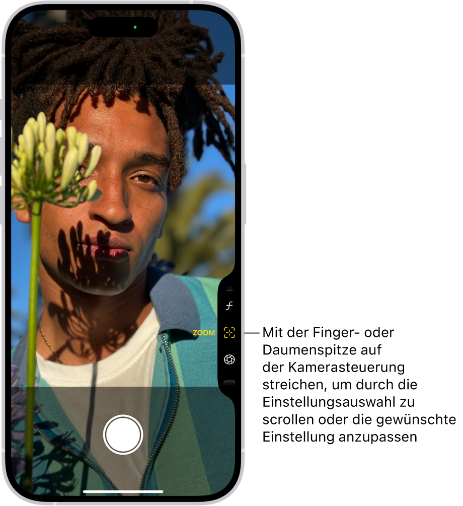 - Streiche mit deinem Finger auf der Kamerasteuerung, um die Einstellung anzupassen.