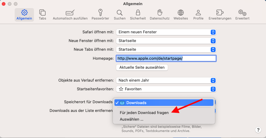 Safari Einstellung "Ask for each download" ist noch immer broken? > ladet alle Files immer in Downloads