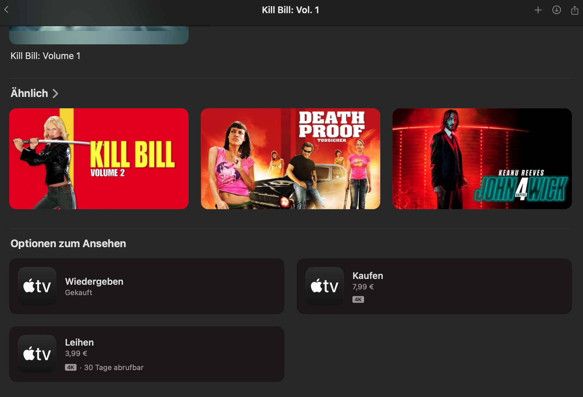 AppleTV, Store; automatischer Upgrade gekaufter Filme von HD auf 4k