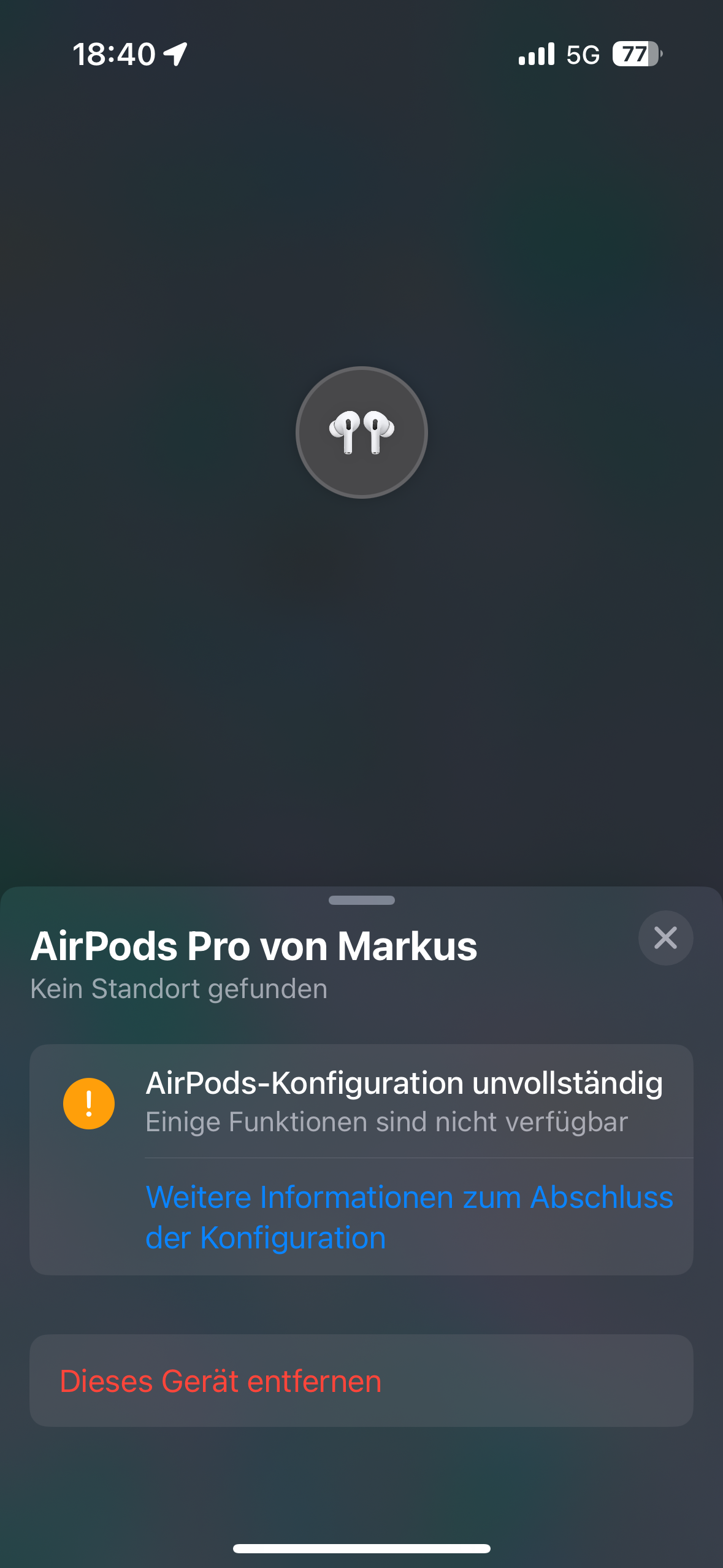 Standort der AirPods Pro 1. Gen lässt sich in „Wo ist?“ nicht finden