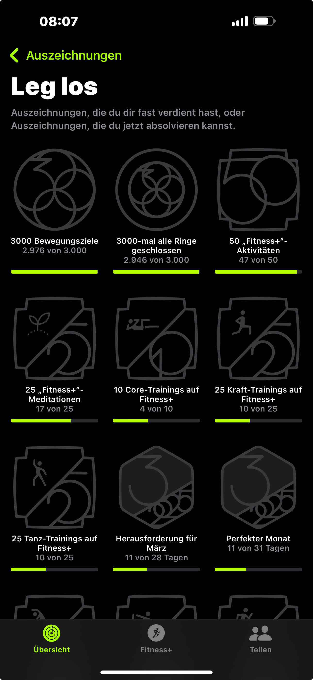Hallo Community, ich habe ein Problem mit meiner Apple Watch10. Und zwar hat die Uhr seit dem 04.03.2025 die täglichen Bewegungsziele einfach nicht weitergezählt und war bis gestern beim Stand von 322 stehen geblieben. Gestern habe ich das Bewegungsziel nicht erreicht und als Konsequenz hat mir die Watch 1 erreichtes Bewegungsziel abgezogen. Ich stehe Stand heute also auf 321 Zielen. Ich hab in der letzten Woche das iPhone und die Uhr mehrfach aus- und wiedereingeschaltet. Leider ohne Erfolg. Auf beiden Geräten ist die Software aktuell; kein Update ist ausstehend. Die Uhr ist knapp 3 Monate alt und scheint ein kleines Rechen-Problem zu haben. Auch die längste Bewegungsserie weicht um über 20 Tage ab… Ich bin für jeden Vorschlag zur Problembehandlung dankbar……