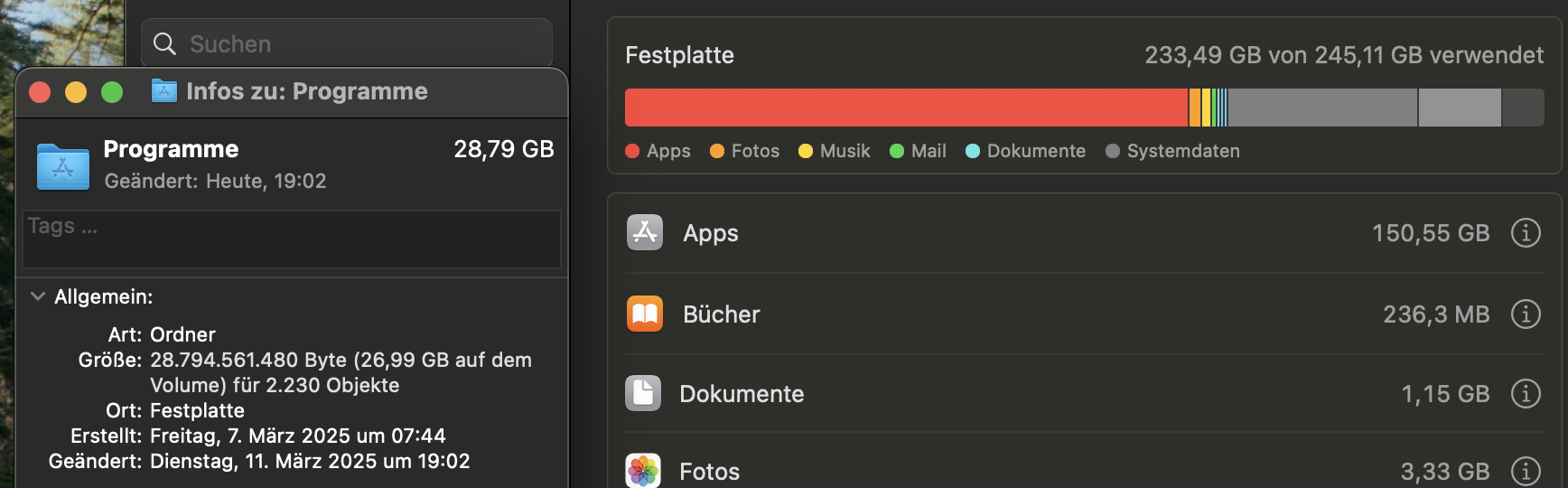 Apps füllen in Systemeinstellungen mehr Speicher als im Finder