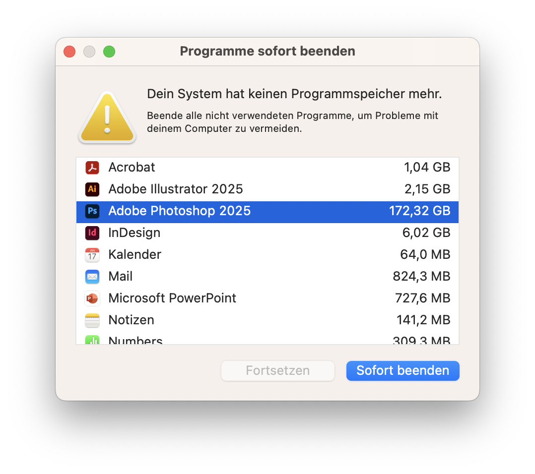 Photoshop verbraucht 172 GB