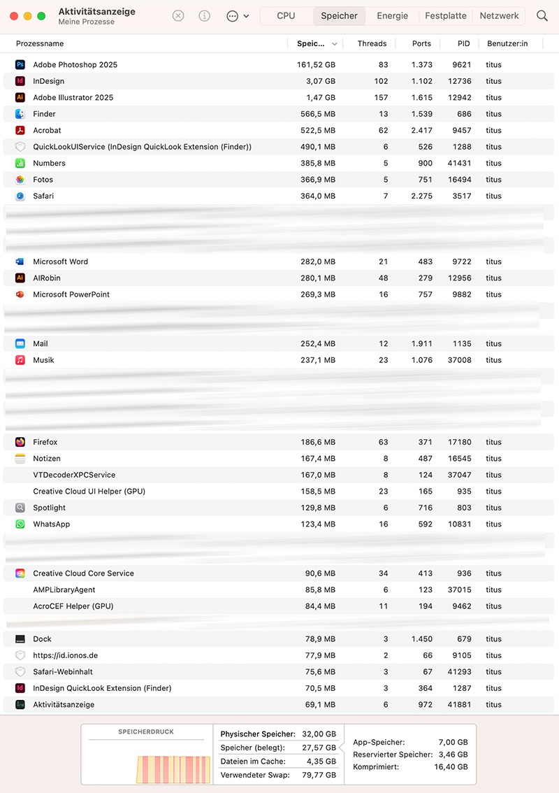 Ich nutze einen Mac mini (seit 2 Jahren problemlos) M2 mit 32 GB Arbeitsspeicher, macOS Sequoia 15.3.2; Photoshop 26.2.0