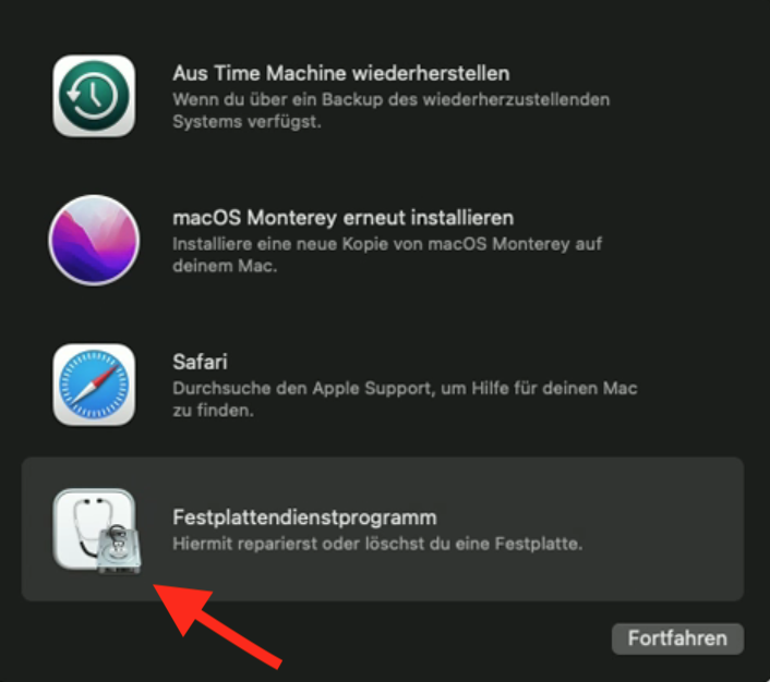 mit dem FPDP die SSD/HDD komplett löschen (APFS, GUID-Partitionstabelle); dann FPDP beenden und "macOS Monterey erneut installieren" anklicken und die soeben formatierte SSD/HDD als Zielvolume für die Installation auswählen.