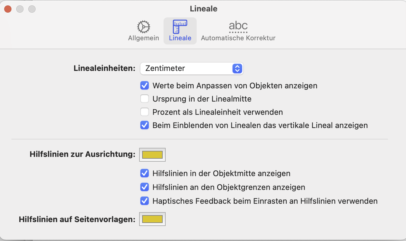 Maßeinheiten in Pages auf dem Mac und in Pages online