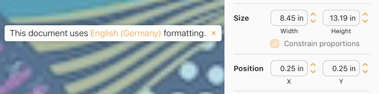 Meine auf dem Mac in macOS Ventura 13.7.5 erstellten und in iCloud gespeichertern Pages-Dokumente verwenden metrische Maßeinheiten auf dem Mac, aber imperiale Maßeinheiten online. Meine Einstellungen für beide Plattformen sind 'Region: Deutschland' und 'Sprache: Englisch'. Wie kann ich metrische Maßeinheiten für Pages auf beiden Plattformen einrichten?