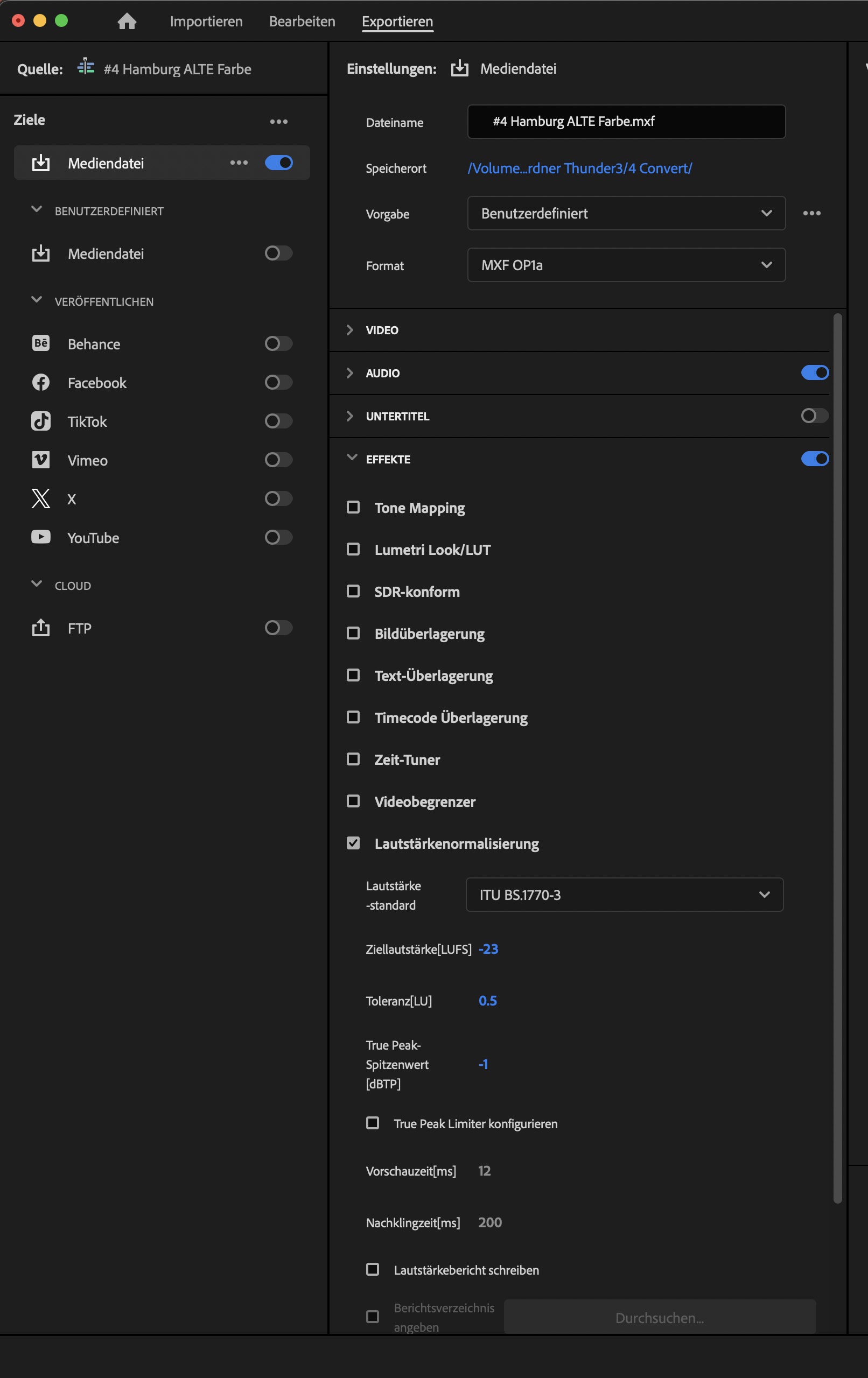 Bei Premiere Pro kann man an mindestens 3 Stellen die Loudness auf –23,00 LUFS normalisieren. Von den Optionen in Audition und Media Encoder möchte ich gar nicht erst anfangen.