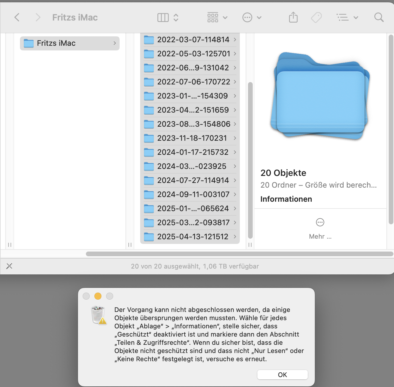 Du könntest außerdem im Festplattendienstprogramm die Festplatte über „Erste Hilfe“ prüfen – und wenn nötig auch neu formatieren (bitte vorher sichern!).