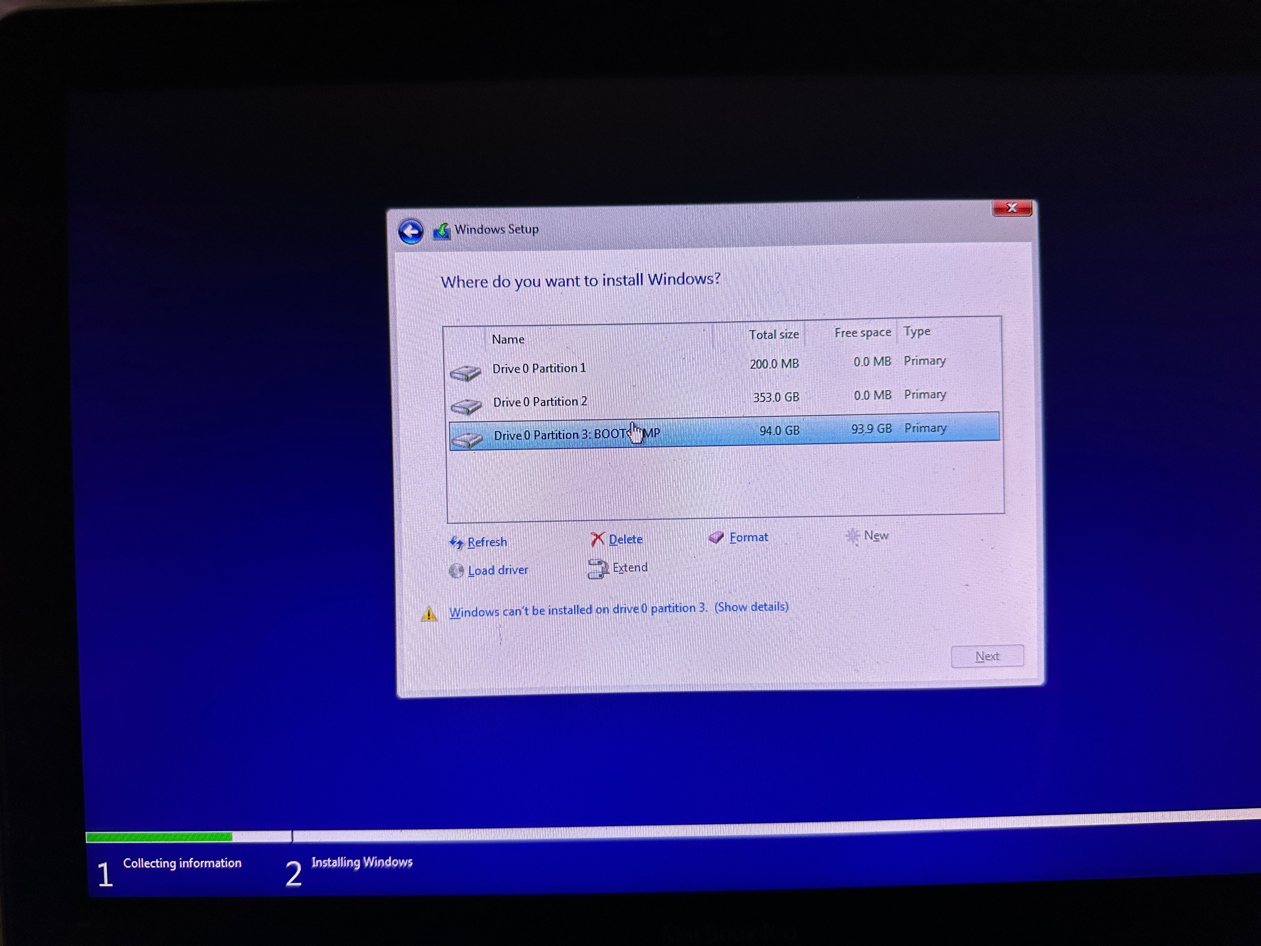 Ich habe mit BootCamp den USB-Stick mit dem Windows-Installer angefertigt und die Partitionen angelegt (400:100).