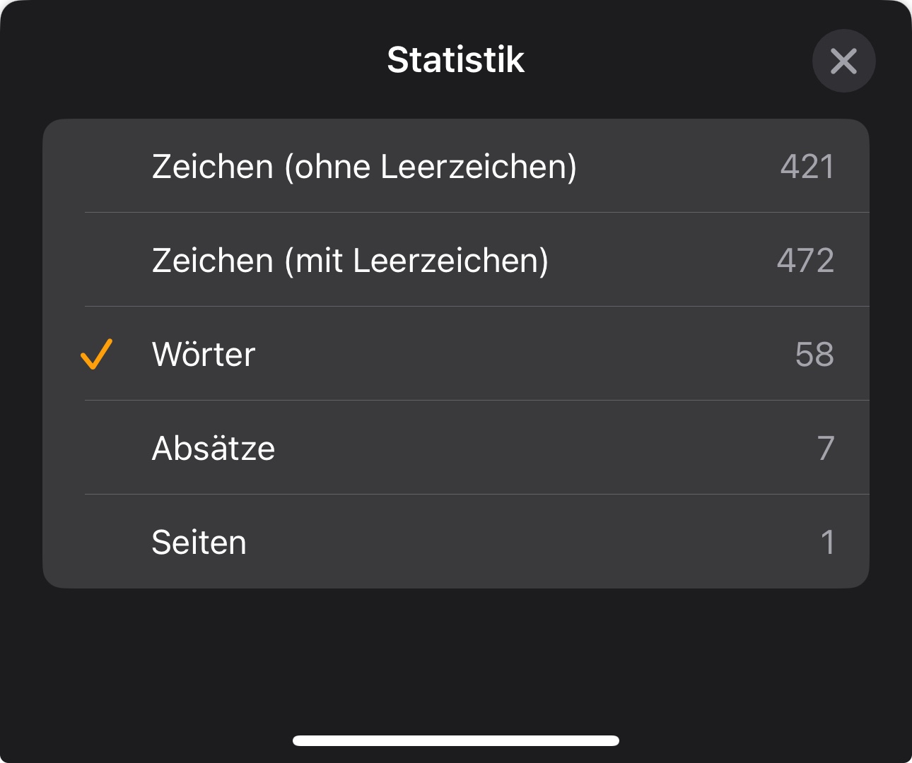 Anzahl der Zeichen im markierten Text am iPhone 15 Pro anzeigen lassen