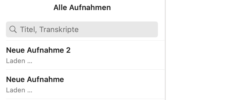 in dem App Sprachmemo auf dem Macbook, habe ich drei Memos, die sich nicht löschen, auswählen … rechte Maustaste klicken lassen. Sie stehen auf ‚Laden‘ und das war‘s. Hat jemand eine Idee, wie ich diese löschen kann? Auf dem Iphone sind sie nicht sichtbar. Danke