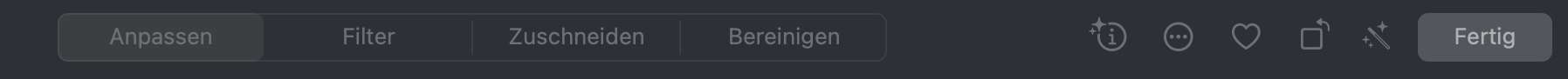 Für andere Fotos, die nicht mit dem iPhone 16 aufgenommen worden sind und wo die entsprechenden .AAE Sidecar Dateien fehlen, siehst du wie bisher die Filter, dort, wo sonst "Stile" erscheinen sollten.