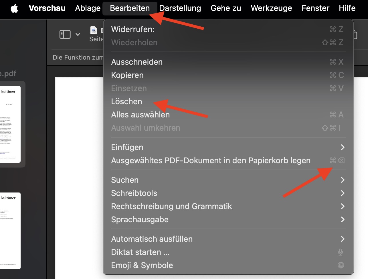 Löschen von einzelnen Seiten in Vorschau auf macOS Sequoia nicht mehr möglich