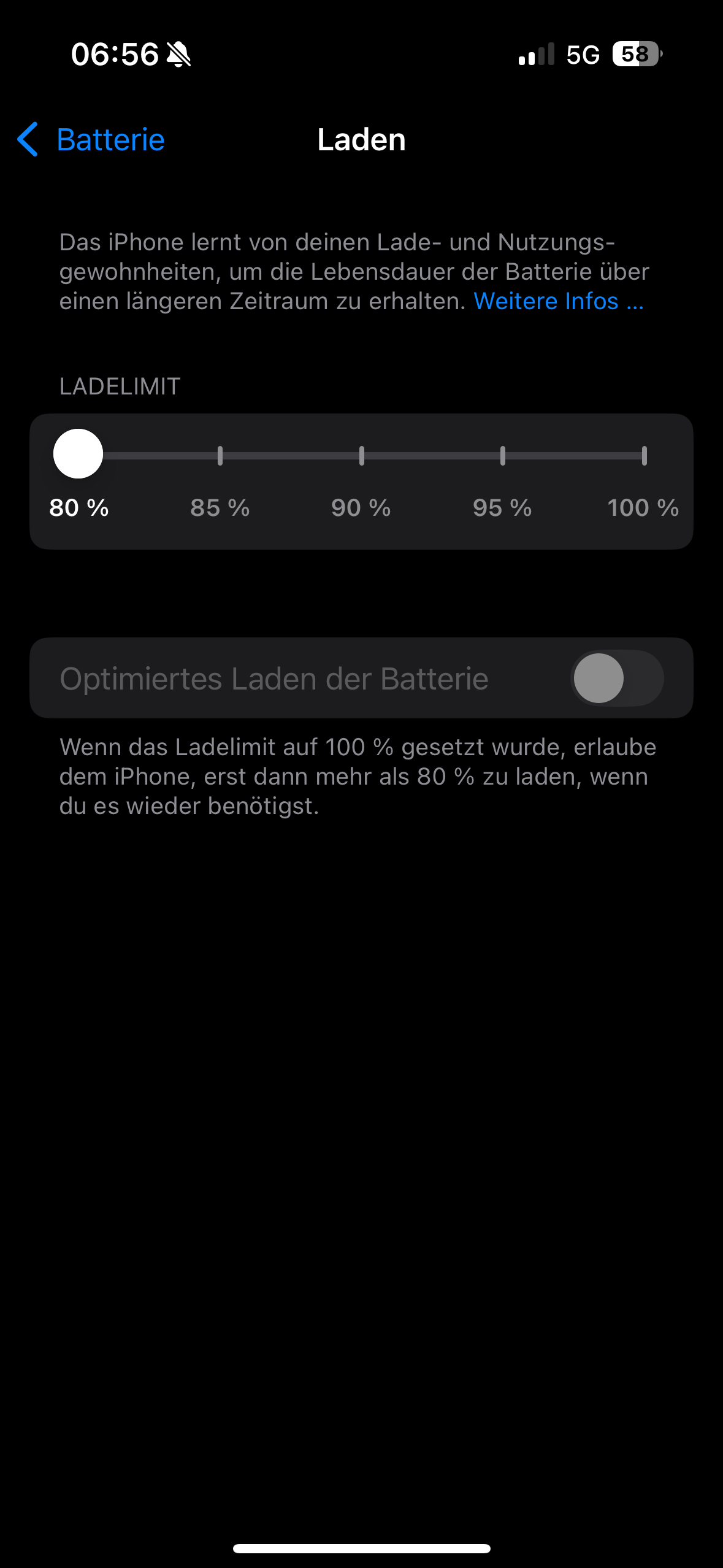 Mein iPhone 16 braucht ca. 3 Stunden oder länger bis es auf 100% geladen ist, wenn optimiertes Laden AUS ist.