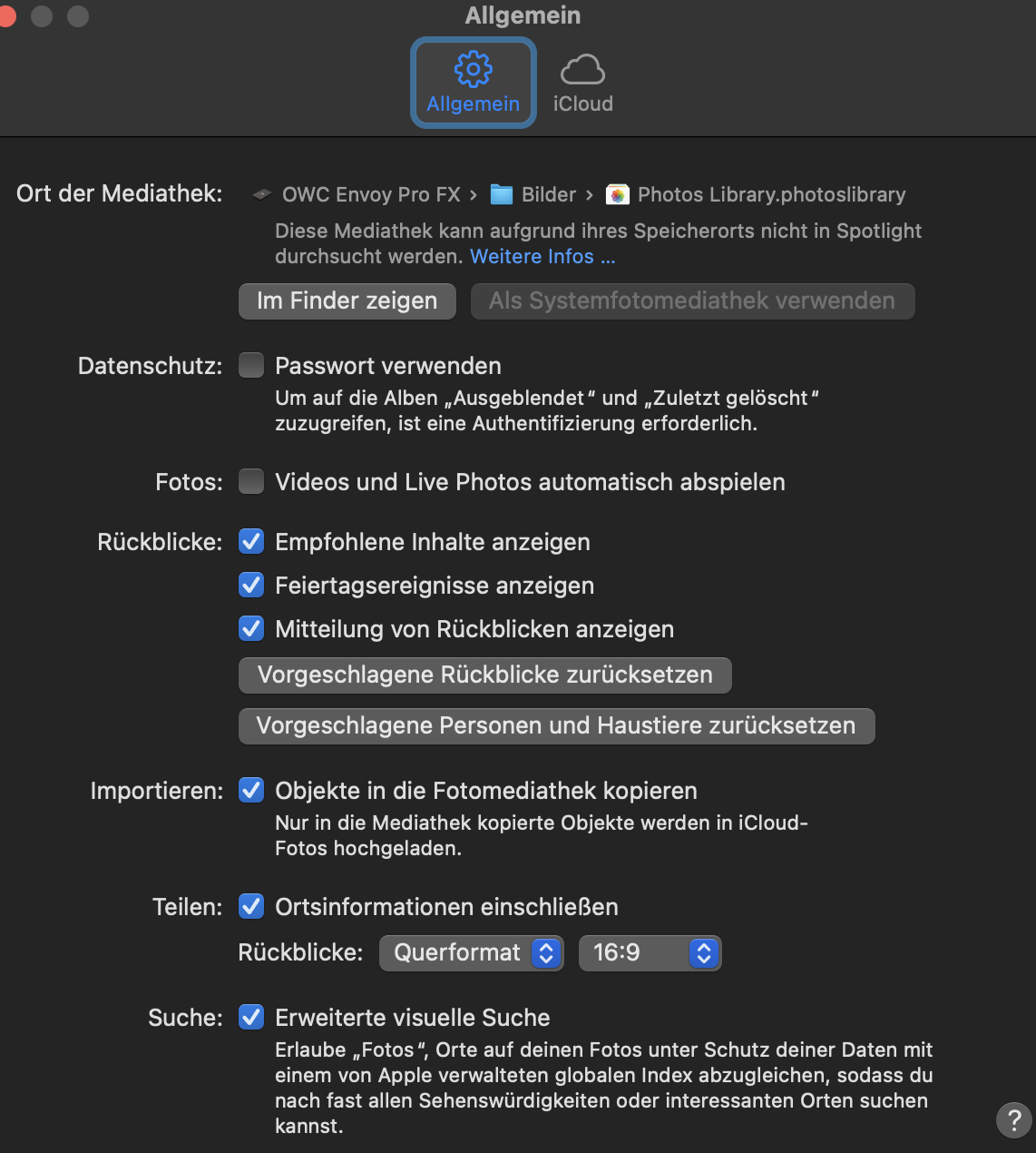 → geprüft, iCloud ist deaktiviert